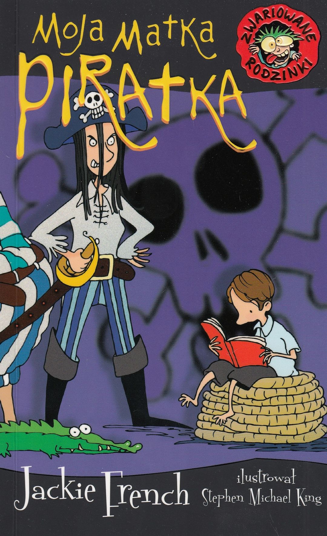 Zabawna i ironiczna seria dla dzieci o rodzinie, która jest nieco bardziej zwariowana niż inne. Jackie French i Stephen Michael King stworzyli książkę, która zachwyci młodych czytelników. A zwłaszcza takich, którzy nie lubią grzecznych i nudnych książeczek. Cyryl marzy o normalnym życiu i chce iść do normalnej szkoły. Ale jak to osiągnąć, kiedy twoja mama jest piratką dowodzącą bandą wilków morskich? Szkoła, do której trafia, nie jest taka znowu normalna, ale Cyryl jest zachwycony, bo może wreszcie zejść z pokładu pirackiego statku. Poznaje nowych kolegów i zyskuje szkolną ksywkę, lecz trochę wstydzi się mamy piratki i jej załogi. Ale kiedy szkole grozi powódź, kto przybywa na pomoc, kto ratuje uczniów i nauczycieli z rozszalałych fal? Mama i jej zwariowani piraci!